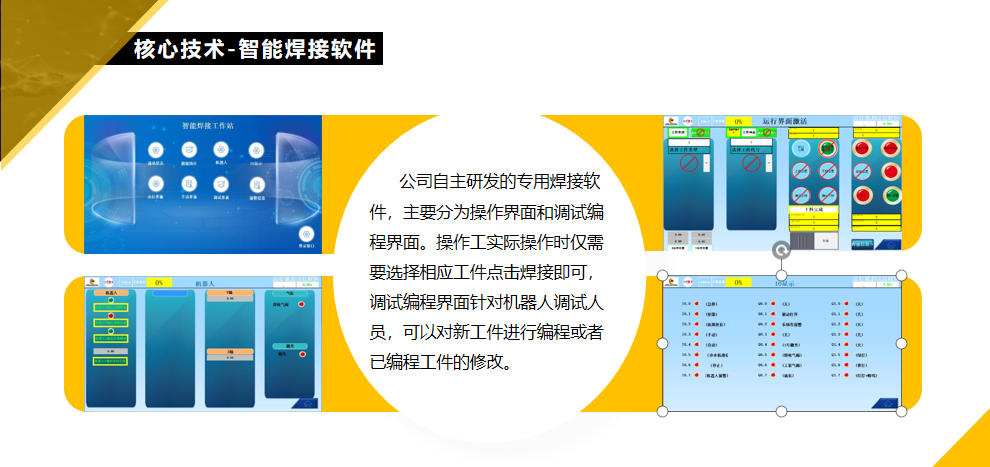 公司自主研發的專用焊接軟件:威卓WISE智能操作引擎,目前已三次迭代,軟件具有免示教,實時跟蹤功能;不需要精密工裝,人機界面操作簡單,普通工人即可操作、具有一件可焊等優勢。威卓WISE智能操作引擎軟件具通用性,能適用于各種工件,只需把圖紙導入,即可生成機器人焊接程序。